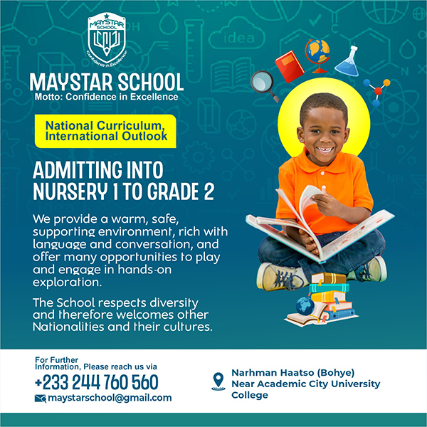 Maystar School opened for the first time in January 2022 with the Preschool, and is growing incrementally. Children are now being admitted up to Grade 4. It runs the Ghana national curriculum, with an international outlook.